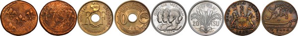 Aujourd'hui, nous vous proposons une sélection de cent monnaies pour l'Afrique Équatoriale Française, l'Algérie, le Cambodge, la Cochinchine, les Comores, Djibouti, la Guadeloupe, l'île de France, l'Île de la Réunion, les Indes Françaises, l'Indochine Française, Madagascar, le Maroc, l'Océanie, la Polynésie Française, le Siam, la Syrie, le Togo, la Tunisie, le Viet-Nam et les émissions générales pour les colonies