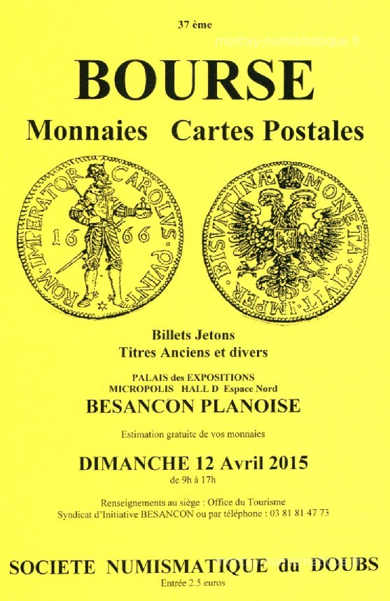 Ce dimanche 12 avril 2015, retrouvez Laurent Schmitt lors de la 37ème édition de la bourse exposition monnaies et cartes postales de Besançon (25).