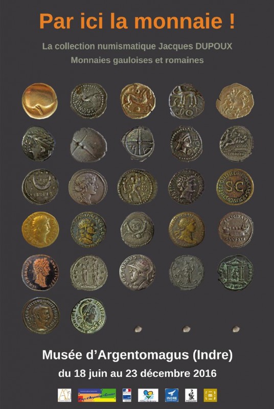 Le musée d'Argentomagus (musée et sites archéologique d'Argentomagus, Saint-Marcel en région Centre-Val-de-Loire) présente jusqu'au 23 décembre 2016 une exposition intitulée "Par ici la monnaie ! La collection numismatique Jacques Dupoux". Celle-ci présente la collection de monnaies gauloises et romaines (environ 700 monnaies) léguée au musée en 1987 par le docteur Dupoux.
