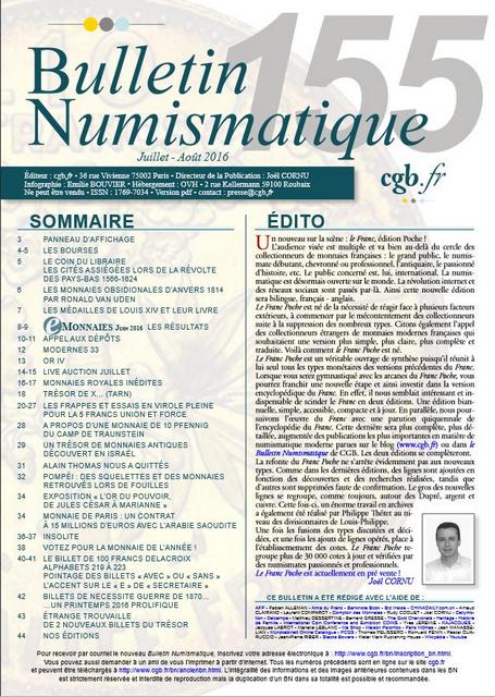 Le Bulletin Numismatique 155 – Juillet/Août 2016 est en ligne !