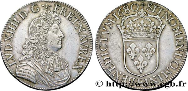 Louis XIV, Écu à la cravate dit du "Parlement", 1680, Tours. SUP, prix de départ 4 000 €.