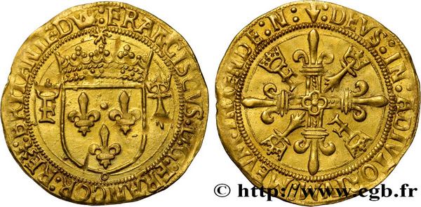 François Ier, écu d'or au soleil de Bretagne, 2e type n.d. Nantes. Rare dans cet état de conservation. SUP, prix de départ 1 200 €.