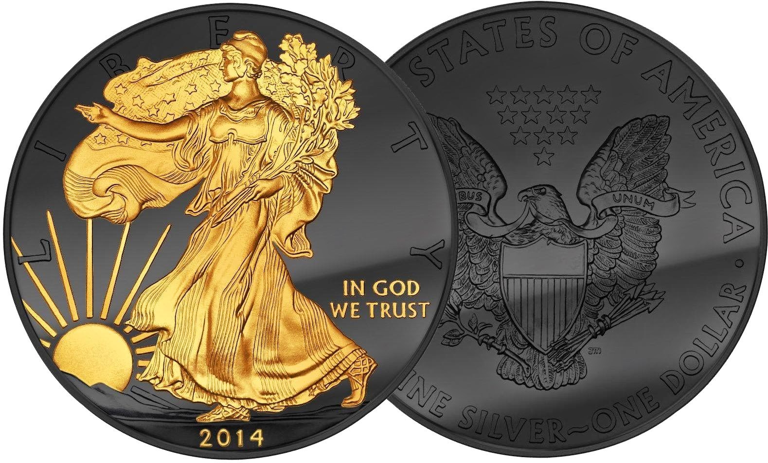 Chaque pièce est entièrement noire sauf pour les éléments les plus importants du revers qui sont mis en évidence avec un plaquage en or 24 carats. Pour l’American Silver Eagle c’est la « walking liberty » et le soleil, pour le panda, c’est l’animal lui même.