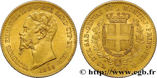 20 Lire Victor Emmanuel II 1859 Gênes – SUP/SPL