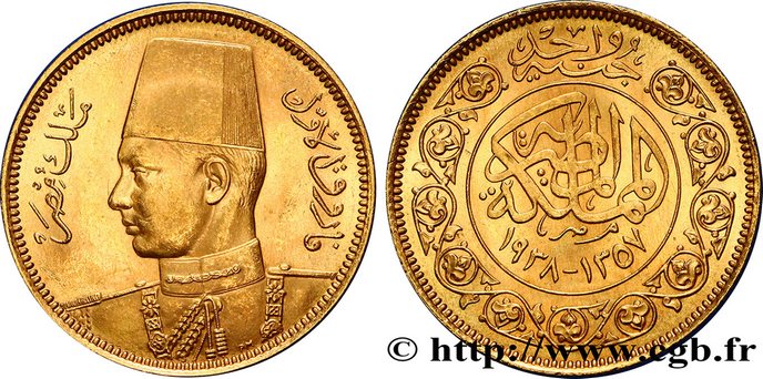Égypte, 100 Piastres or jaune, pour le mariage de Farouk AH 1357 1938 – SPL