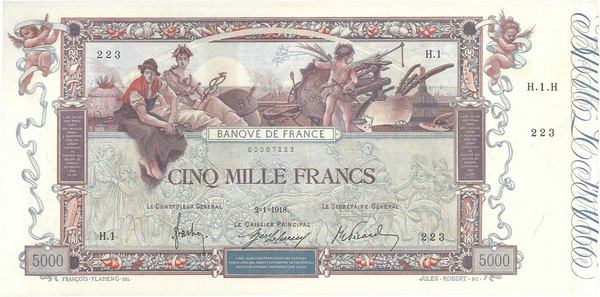 Lot 5000 Francs Flameng 1918, F.43.01 – pr.SUP