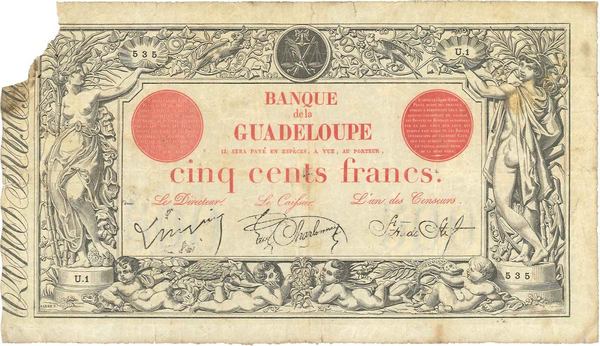 Lot 500 Francs, type 1852 modifié 1874 Guadeloupe 1923 P.10b – TB