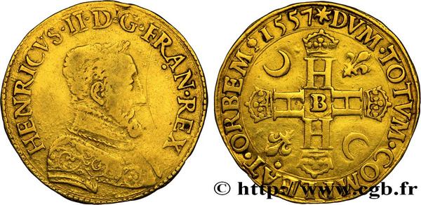 Henri II – Double henri d'or, 1er type, 1557, Rouen, TTB. Prix de départ 3 600 €.