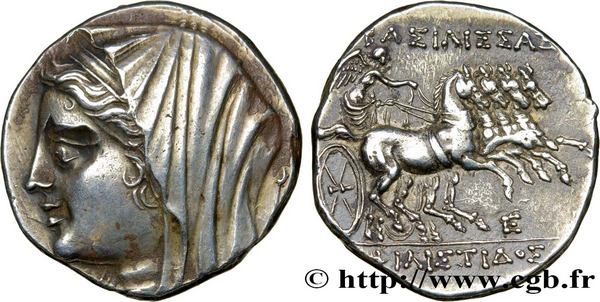 Le Seize Litrai frappé à Syracuse pour la Sicile à l'effigie de la reine Philistis est parti au prix de 2 700 € (prix de départ 1 500 € / estimation 2 500 €).