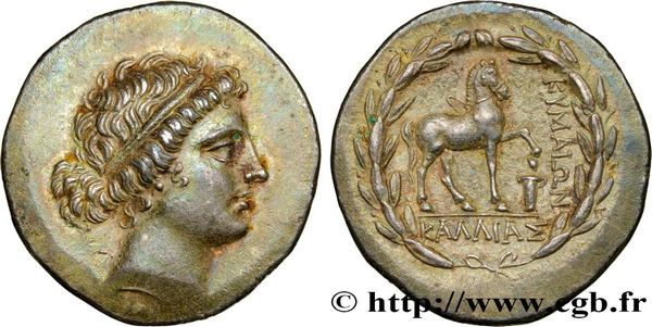 Prix d'estimation dépassé (1 200 €). Ce splendide tétradrachme stéphanophore à l'effigie de la nymphe Kymé s'est vendu 2 600 €.
