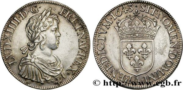 Jolie bataille de dernière minute pour cet écu à la mèche courte frappé à Paris, Monnaie du Louvre, en 1643 à l'effigie et au nom de Louis XIV. Prix de départ 380 € pour un prix final à 660 €.