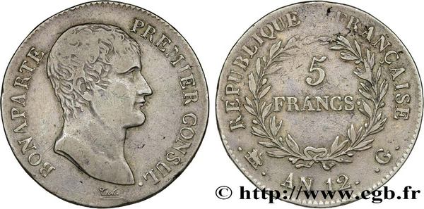 Ce rare exemplaire de 5 Francs Bonaparte Premier Consul frappé à Genève en 1804 (prix de départ 1 500 € / estimation 2 800 €) s'est clôturé au prix de 3 568 €.