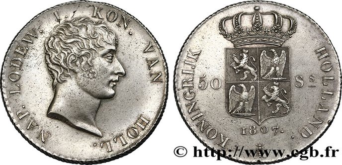 Le 50 Stuivers en argent frappé à Utrecht en 1807 à l'effigie de Louis Napoléon, roi de Hollande, s'est vendu à 4 502 € pour un prix d'estimation de 3 000 €.