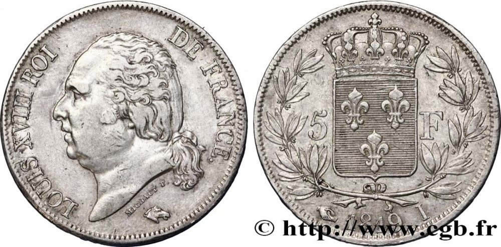 Une 5 Francs Louis XVIII 1819 I