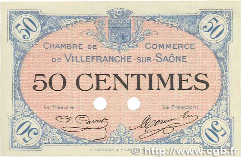 Vous pourrez retrouver des exemplaires spécimens pour la Chambre de Commerce de Villefranche-sur-Saône (JP.129.02) et pour la Chambre de Commerce de Vienne (JP.128.03) :